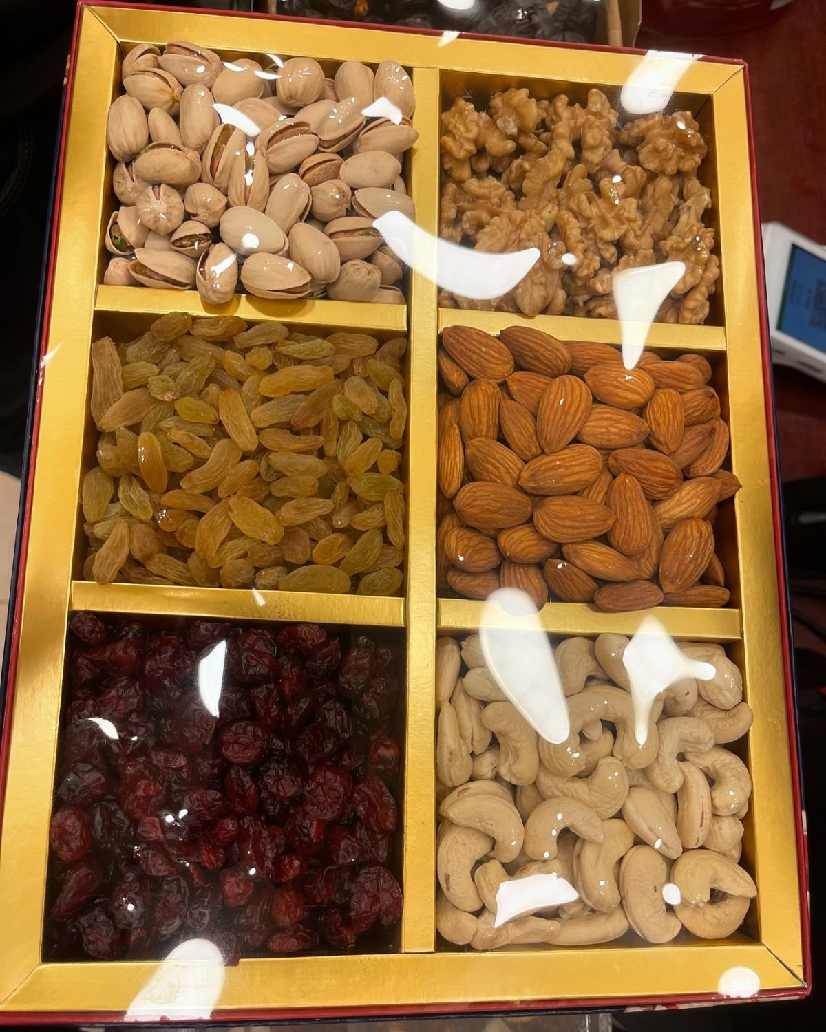 Premium assortment of almonds, cashews, pistachios, walnuts, raisins & dates